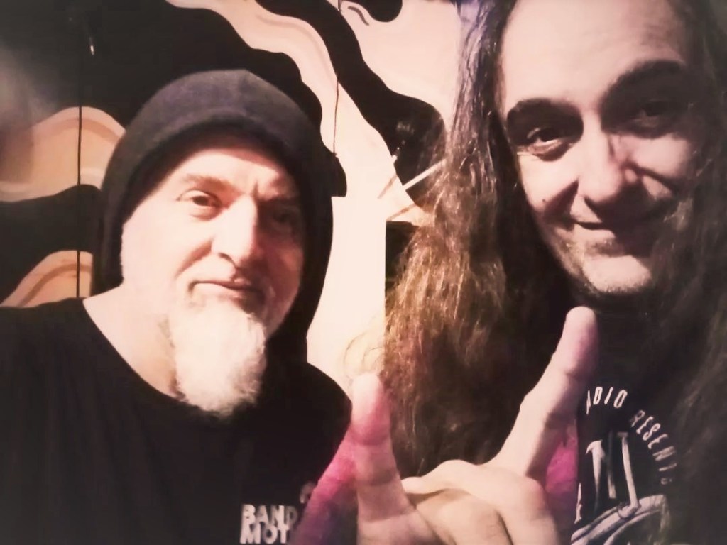 Yours truly with drummer/engineer Mike Sabatini taken earlier todayDo you know how difficult it is to keep quiet when you’re excited like a kid at Xmas morning? I have learned the art of admirable restraint (thanks to Bill Bruford) over time.