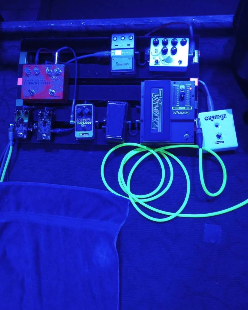 Right before soundcheck, my footswitch broke. Under my foot! Went to tap on it and…nothing. The sound guy tried fixing it and said “It’s done, man.” So with some quick thinking, I pulled the cable out from behind the amp and my tone came back! I said to the band, “No clean tones for me, only distortion” and I didn’t hear any complaints.