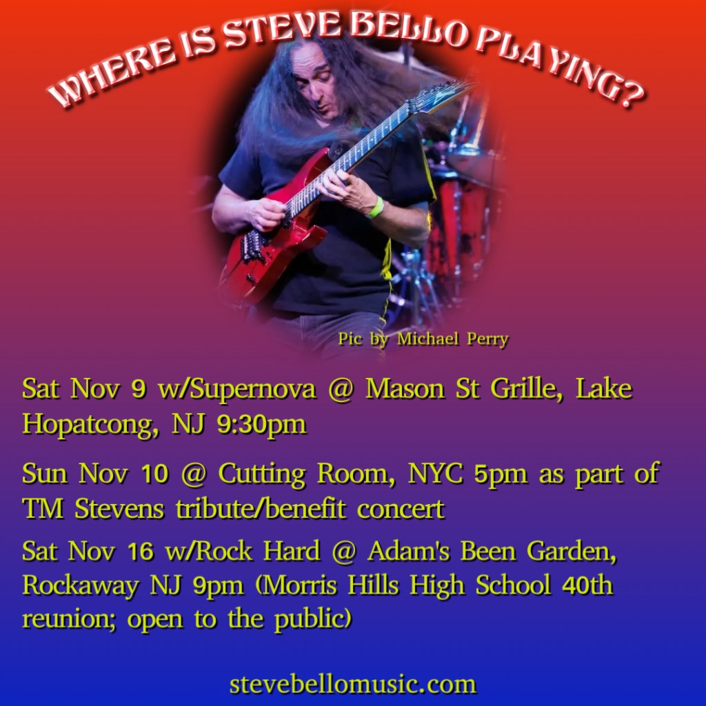 My November calendar is already filling up and this is a great way to celebrate another year around the sun. I thought my tenure with Supernova was done on Oct 26 but their guitarist Frank still needs more time to heal from his shoulder surgery. He will be back starting in December, so I have been asked to do the gig on November 9 at Mason Street Grille in Lake Hopatcong, NJ. I will be looking forward to doing this show, and of course they know they can always ask me to jump in if needed for the future.