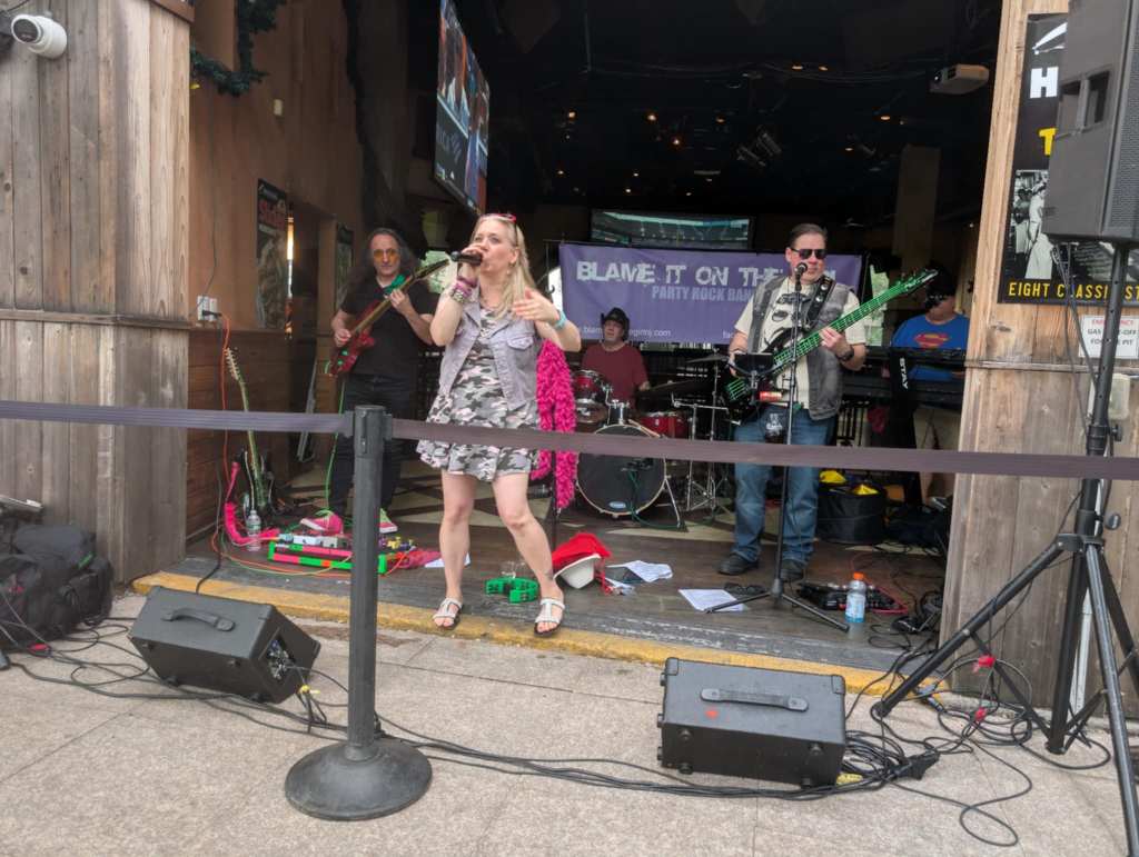 When you’re competing with a very live-sounding room as well as glass and other variables, the sound will bounce all around. This is physics 101. Blame It On The Girl was supposed to play outside but it was considered “too hot” so things were moved inside but not totally. Yes the bay door was open, there was a nice breeze flowing, but seeing people cover their ears and then being told “You’re too piercingly loud, cut it in half” is not the most inspiring thing to hear.