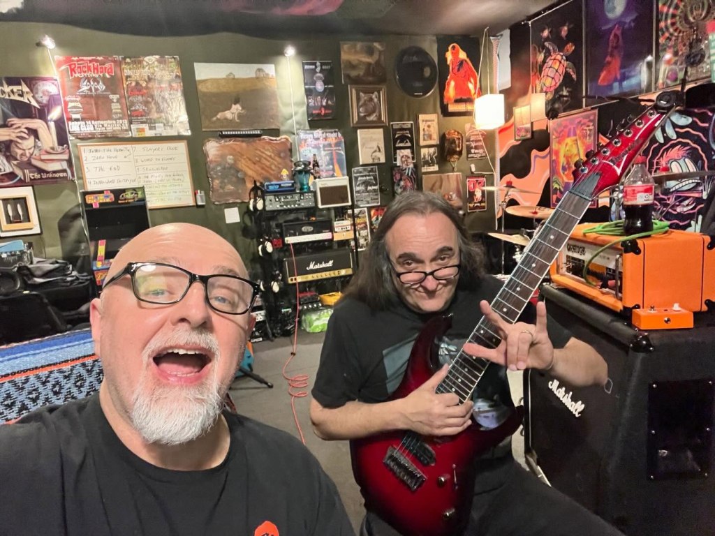 One thing people will notice when they hear the new songs is that it’s a very guitar-dense album. “That’s all your albums, right, Steve?” Well, no. I always concerned myself with pulling things off live. But since I no longer feel compelled to get back on stage with my own material, Mike and I (along with friend Jon Hanneman) said “LAYERS! Layer those guitars!” So we’re piling them on. Different chord voicings to add more texture and flavor. One chord might have open strings, another will be a power chord, and the results blend. Clean chords under metal chords. This isn’t going to sound like a Boston or Def Leppard album, but it will still give listeners a lot to chew on.