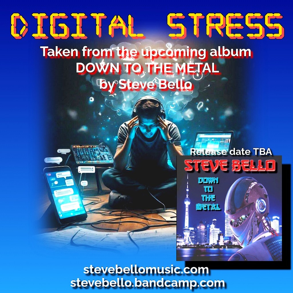 That will be the name of the new studio album (release date TBA) but for now, you can hear the first single “Digital Stress” by clicking on my Bandcamp page. The song will be available for a limited time. When the full album is released, the single will be removed.