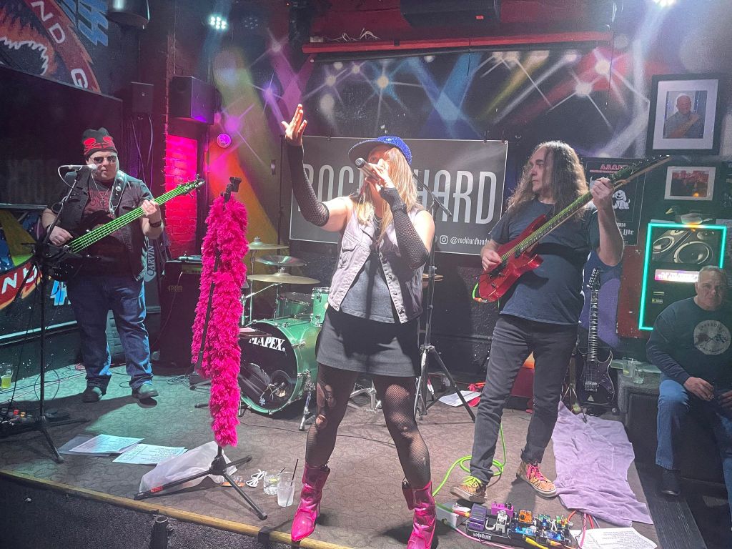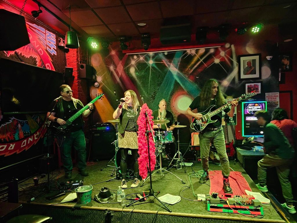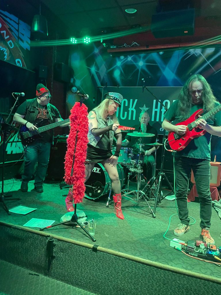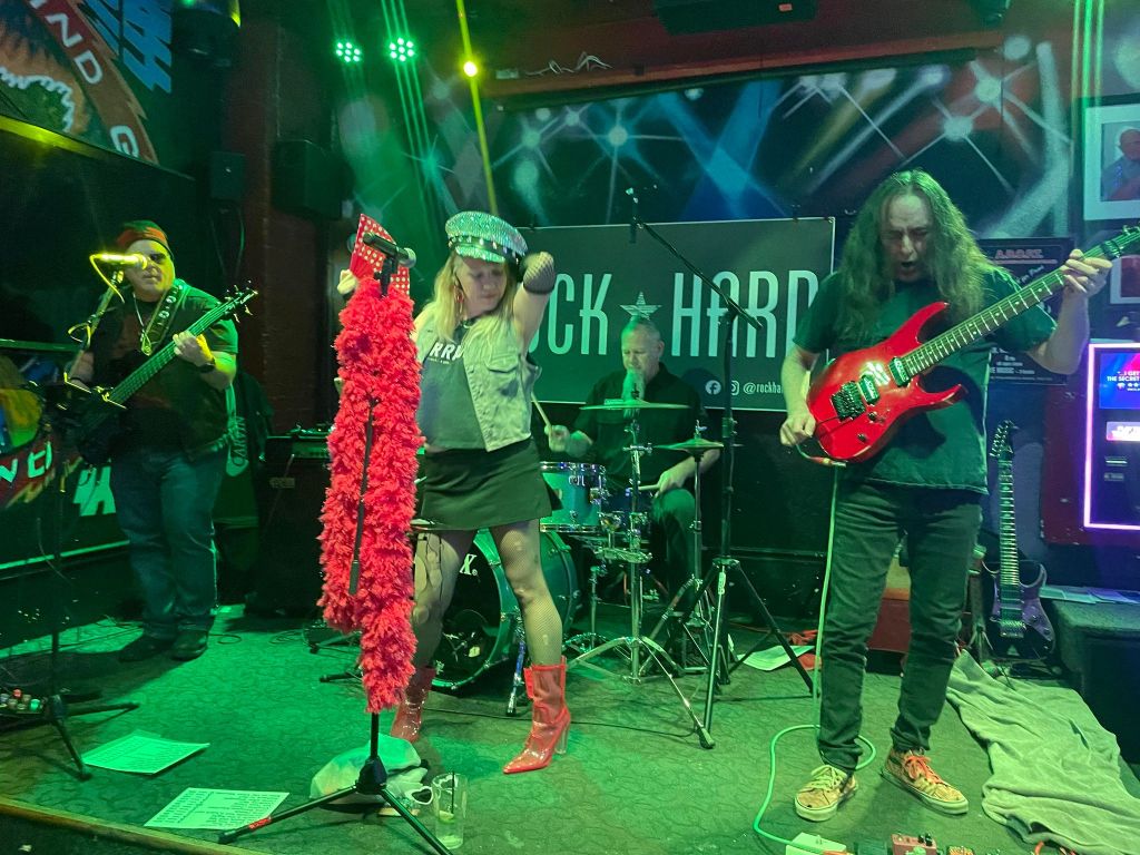 L-R: some guitarist, Jen Majura (Evanescence), Debbie Pearl and Rachel G!