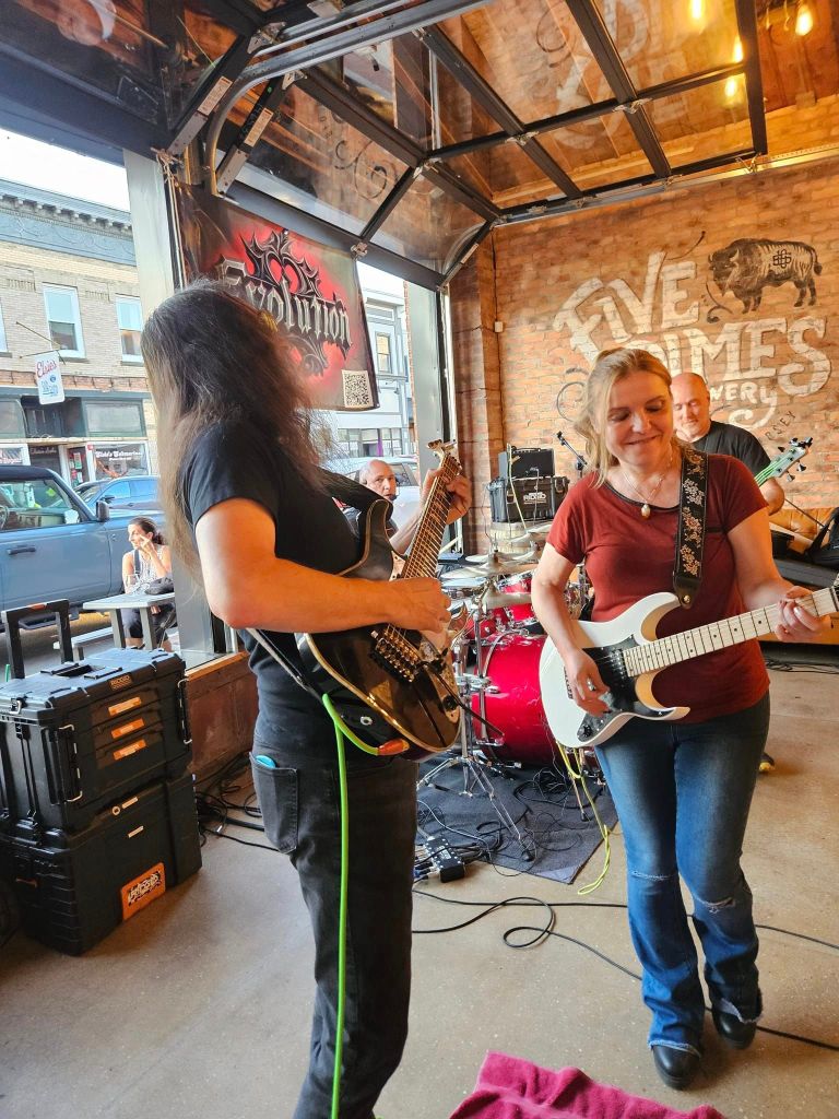 The super-cool Nita Strauss (Alice Cooper); both repping Ibanez!
